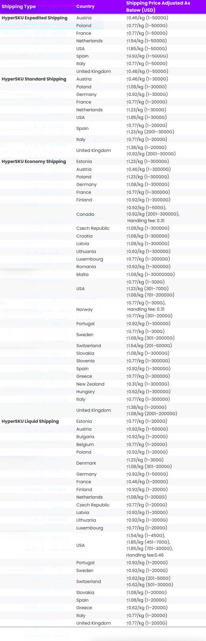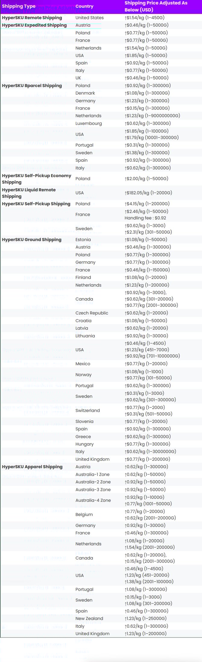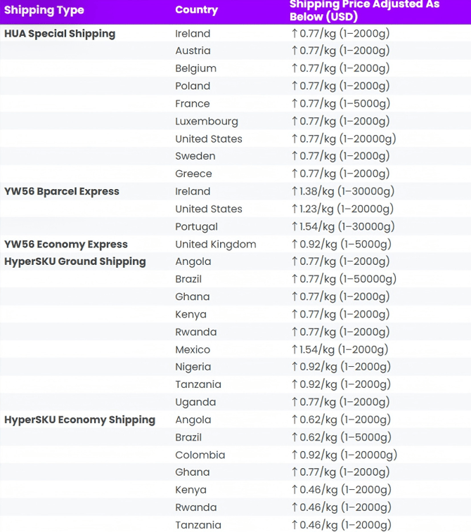on March 26th, HyperSKU adjusted the shipping price as below: