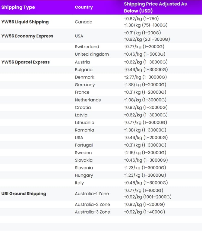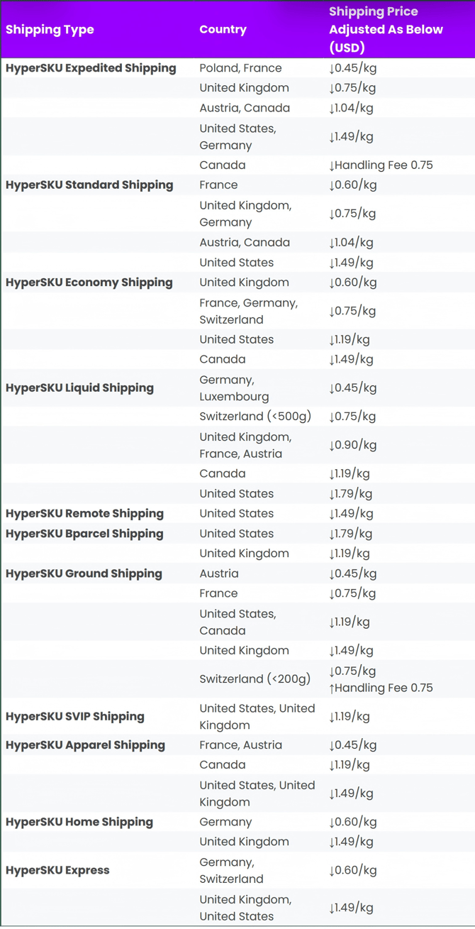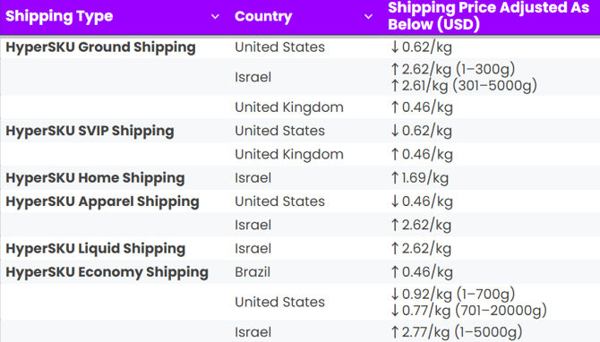 Presented below is the history of shipping rate adjustments made by HyperSKU.