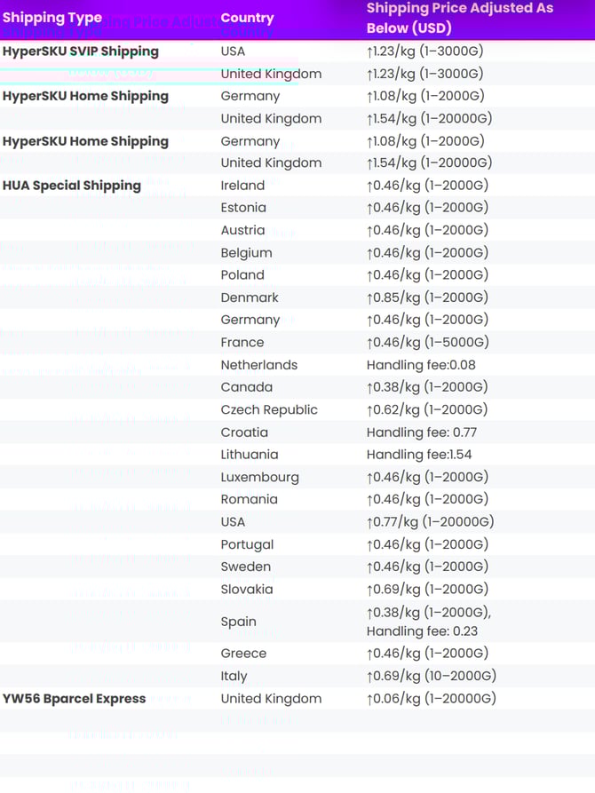 on March 23rd, HyperSKU adjusted the shipping price as below: