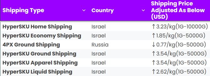 on Feb10th, HyperSKU adjusted the shipping price as below: