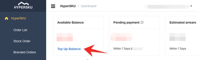 1. Click Top Up Balancein the Dashboard (main screen).