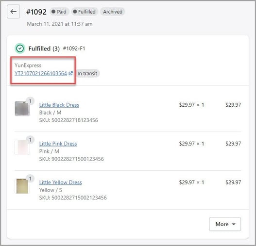 If your store is connected to HyperSKU, the order status, tracking number, and tracking URL will automatically sync back to your store.